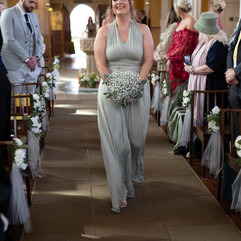 As Bryony's six bridesmaids made their entrance, they looked radiant in elegant Victoria Lou dresses; each carrying a timeless gypsophila bouquet.